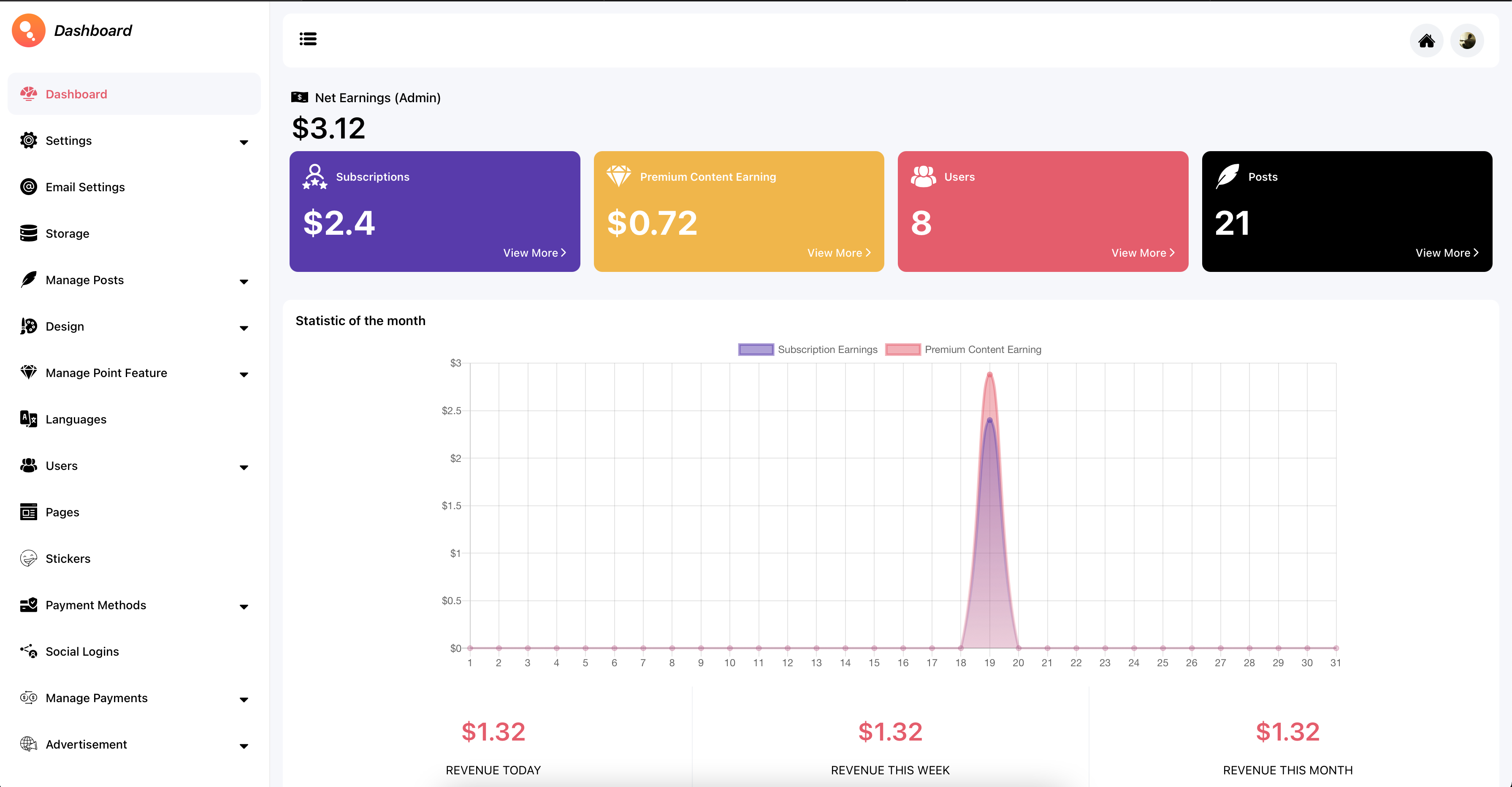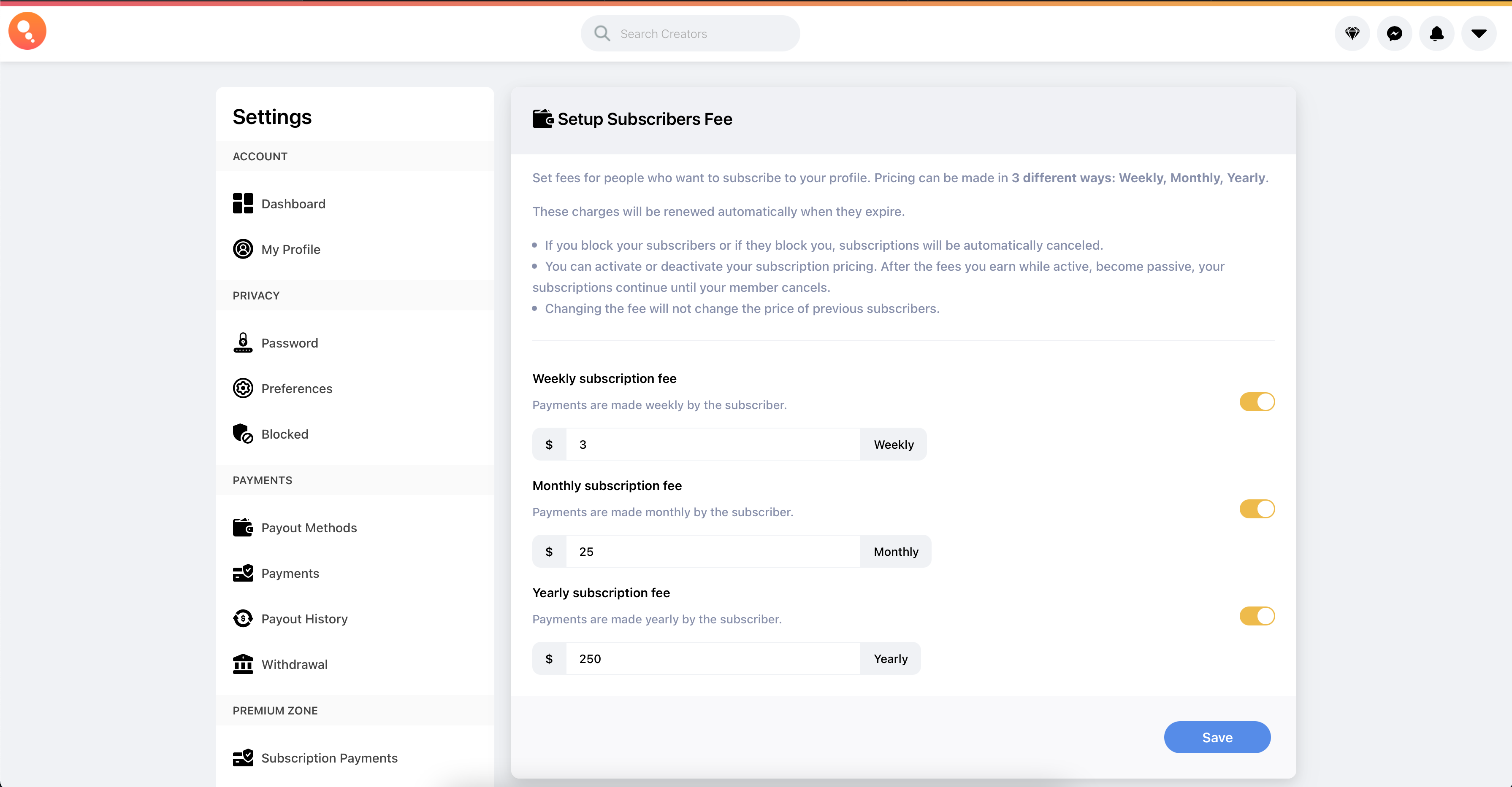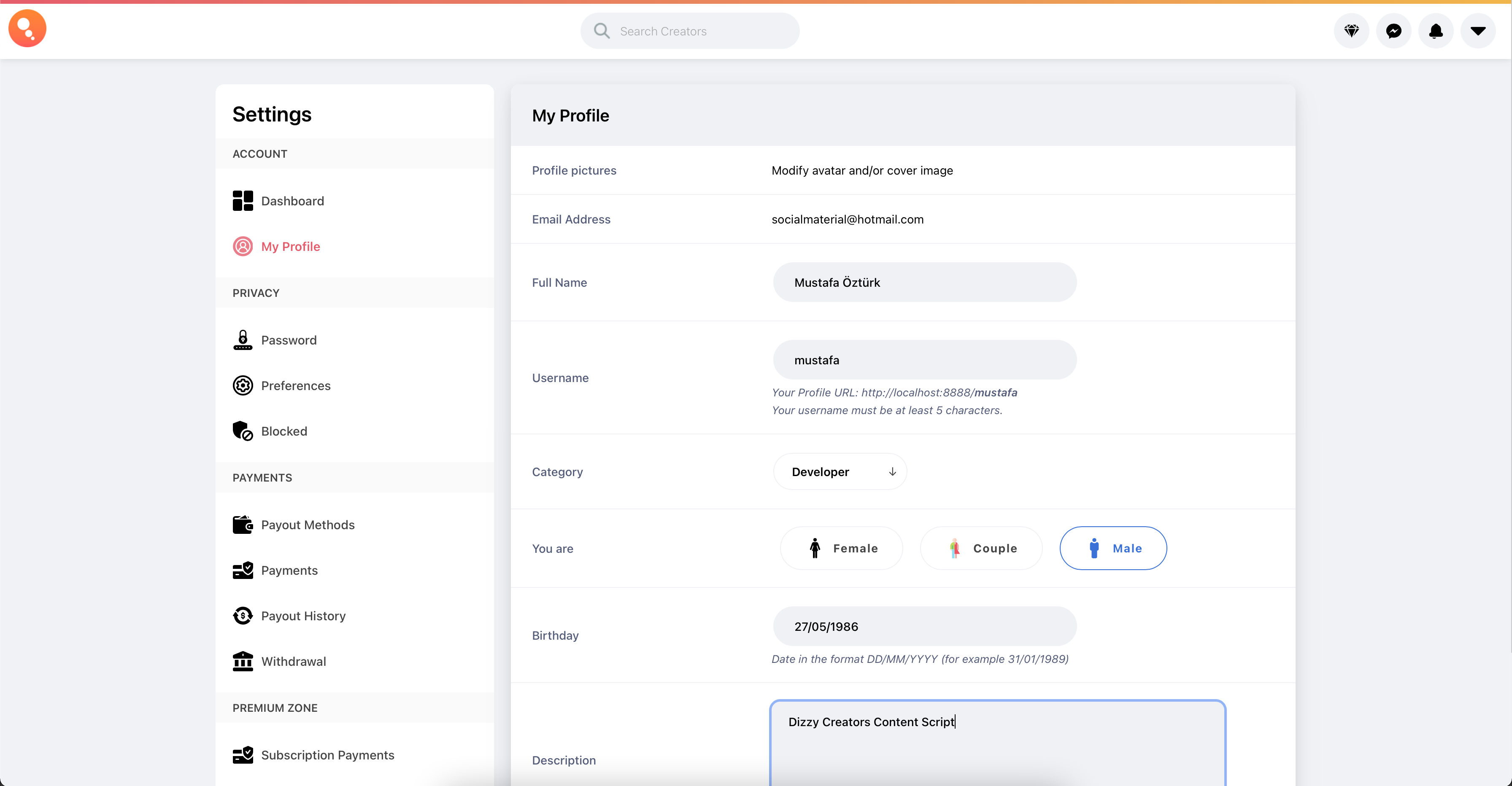 Dizzy is not a clone script with a flexible interface. In terms of features, it may be similar to OnlyFans or Patreon sites, but if you need a unique project, dizzy offers you exactly those.